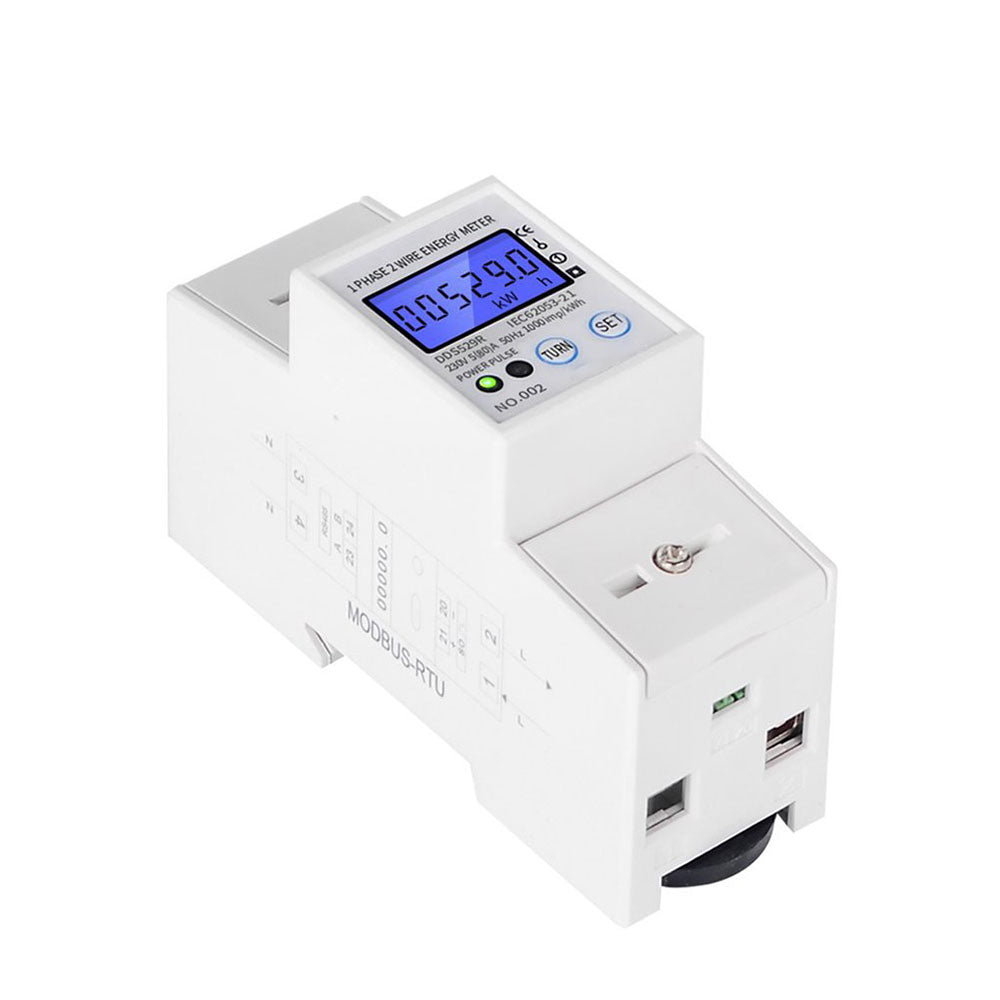 Intelligent RS485 Electric Power Meter Single Phase 2 Wire Energy Meter DIN Rail Mounting LCD Backlight Display AC 230V 5-80A