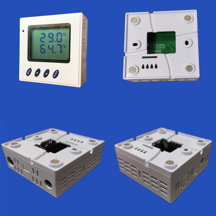 Use for detecting air temperature and humidity, not waterproof, widely used in communication rooms, intelligent buildings, workshops, warehouse, medicine warehouse, library, museum, laboratory, office, ventilation duct and others normal environment. Wall-mounted ceiling structure, pin-type terminals, easy to install wiring.
